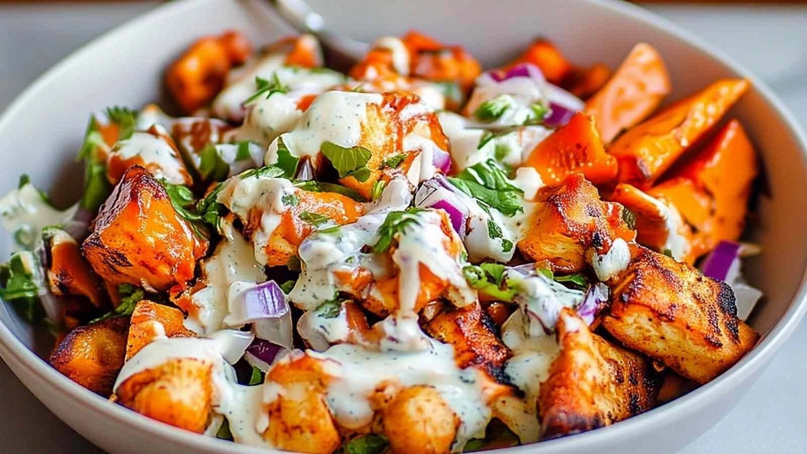 When the first sizzle hits the pan, you can almost hear the kitchen whispering, “You’re about to taste greatness.” The aroma of smoked paprika mingles with garlic powder, creating a scent that feels like a warm hug from a friend who knows exactly what you need. The texture of the chicken turns from raw to tender in minutes, while the sweet potatoes develop a caramelized crust that shatters like thin ice when you bite into them. And that buffalo sauce—oh, that sauce—it coats the chicken like velvet, yet it still leaves a fiery trail on your tongue that lingers just long enough to crave a second bite. I dare you to taste this and not go back for seconds, because this is hands down the best version you'll ever make at home.