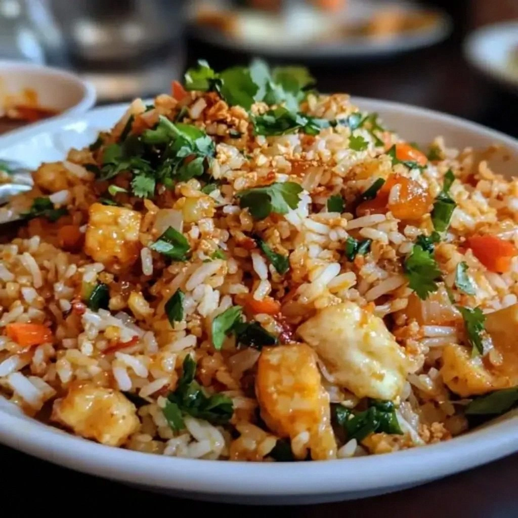 Picture this: a pan sizzling with aromatic garlic and ginger, the aroma of red curry paste swirling, and the gentle hiss of coconut milk meeting hot oil. The rice, fluffy and separated, is tossed into the mix, absorbing every nuance of the sauce. The vegetables pop with a crisp snap, while the protein—chicken or tofu—cooks to a tender finish. The dish finishes with a drizzle of lime and a sprinkle of scallions, releasing a bright, citrusy aroma that makes the whole kitchen feel like a tropical getaway.